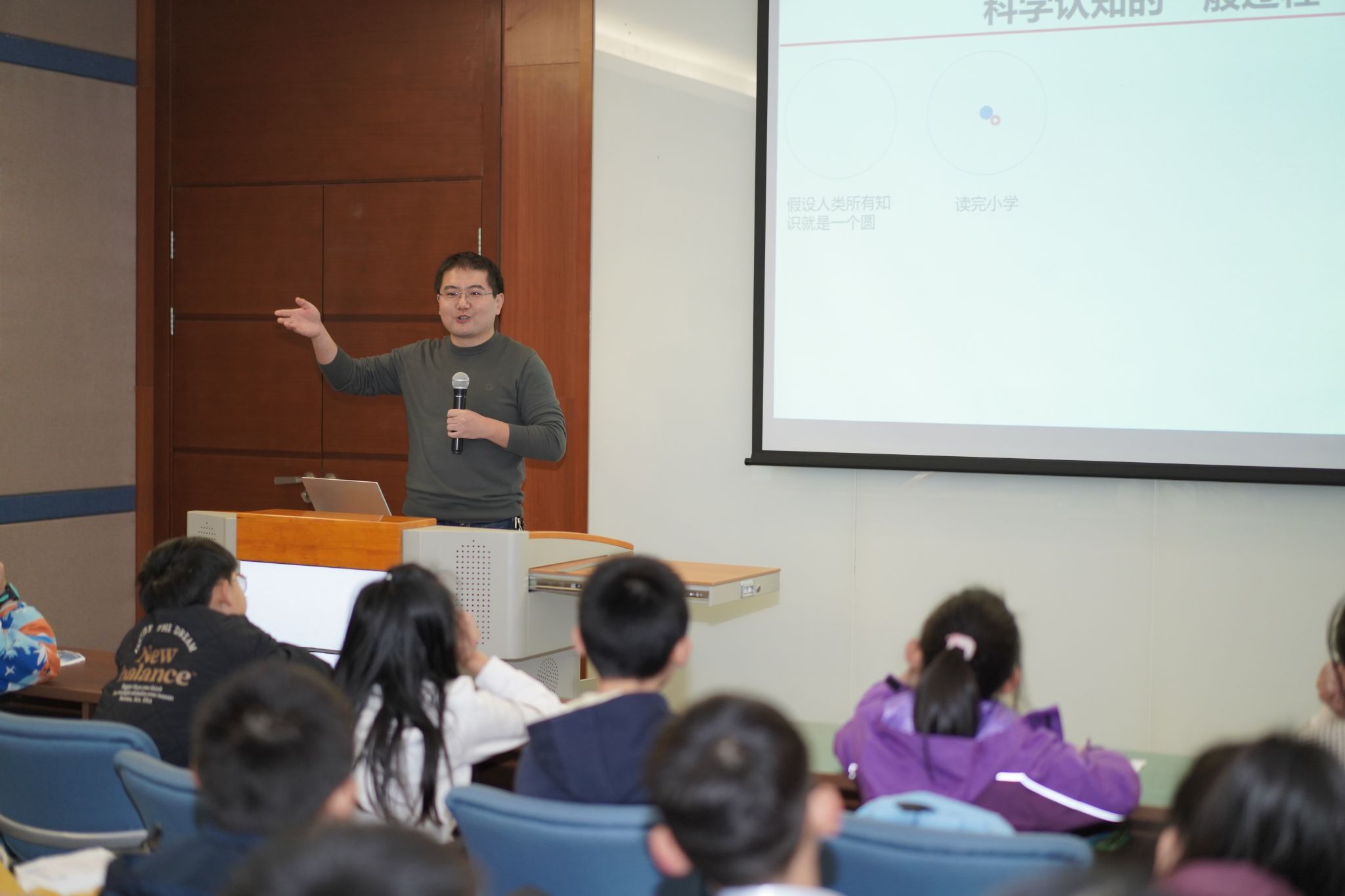 王爱峰为学生们讲超导(沙区科技局供图)